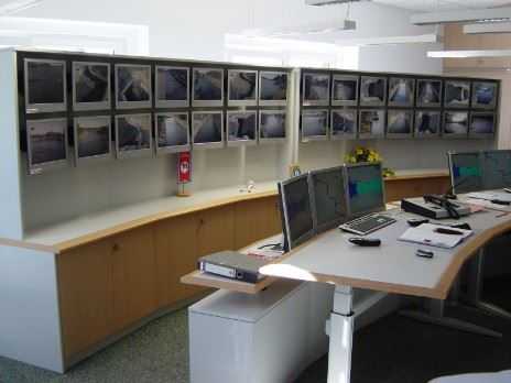 Von der Leitzentrale aus werden alle angeschlossenen Schleusen fernbedient. Für die Überwachung und Fernbedienung der Schleusen wurde für jede Schleuse eine Kameraanlage installiert. Jede Schleuse wurde dafür mit 7 Kameras an verschiedenen Standorten