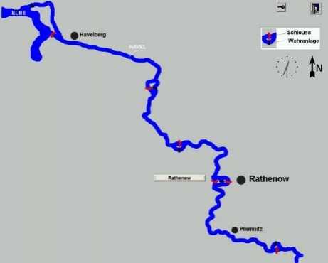 • Hauptschleuse Rathenow / Wehranlage Mühlenarm Rathenow (zweifeldrige Fischbauchklappen)